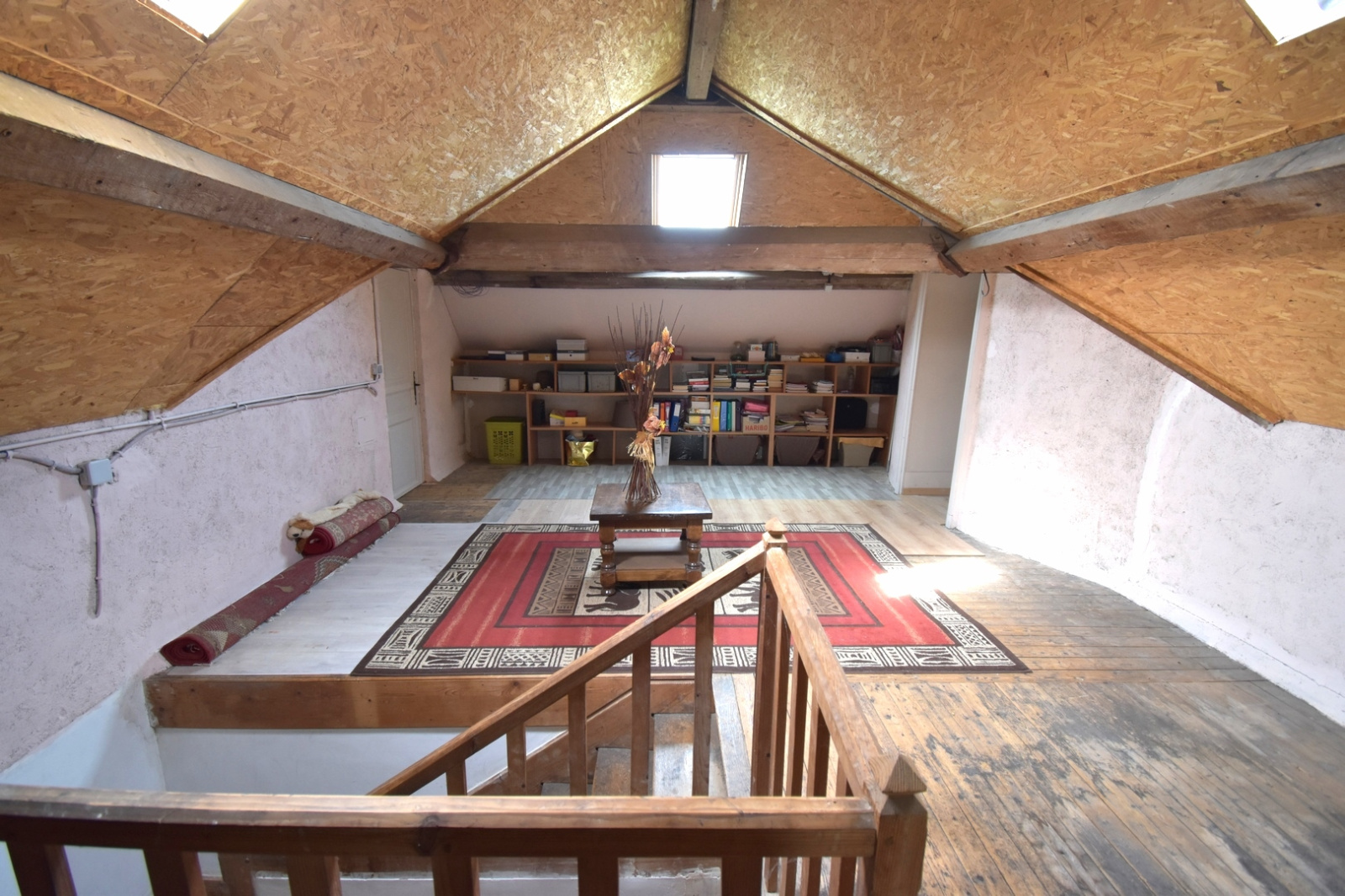 Une maison d'habitation composée d'entrée, cuisine, salle à manger, salon, une chambre, une salle de bains avec wc, une salle d'eau avec wc; à l'étage : grand palier, trois chambres, wc.