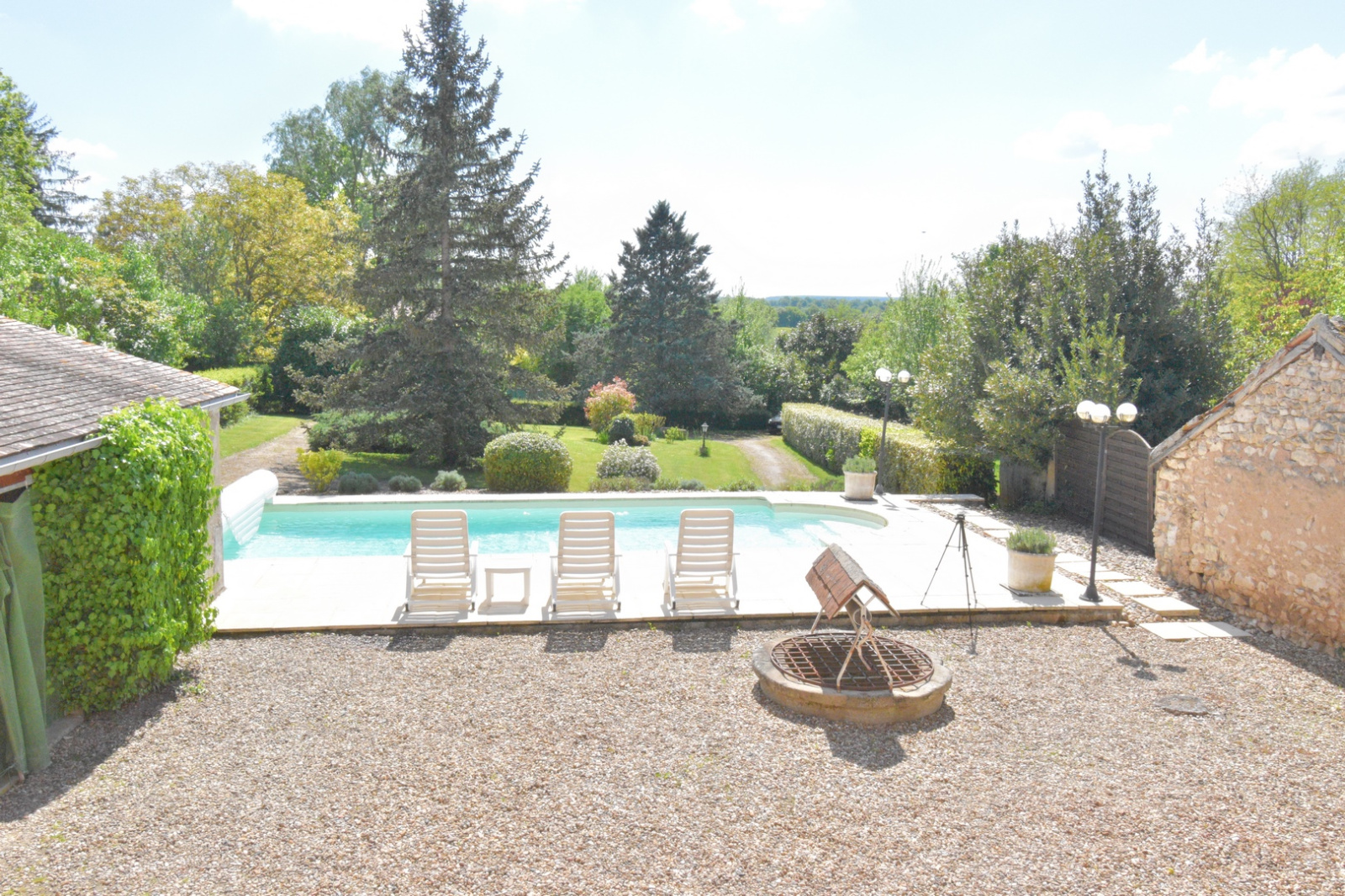 Chauffage électrique avec radiateurs à inertie. Cave avec accès intérieur. Piscine 8x4 chauffée par pompe à chaleur. Pool-house, local technique. Carport pour deux voitures. Parc attenant.