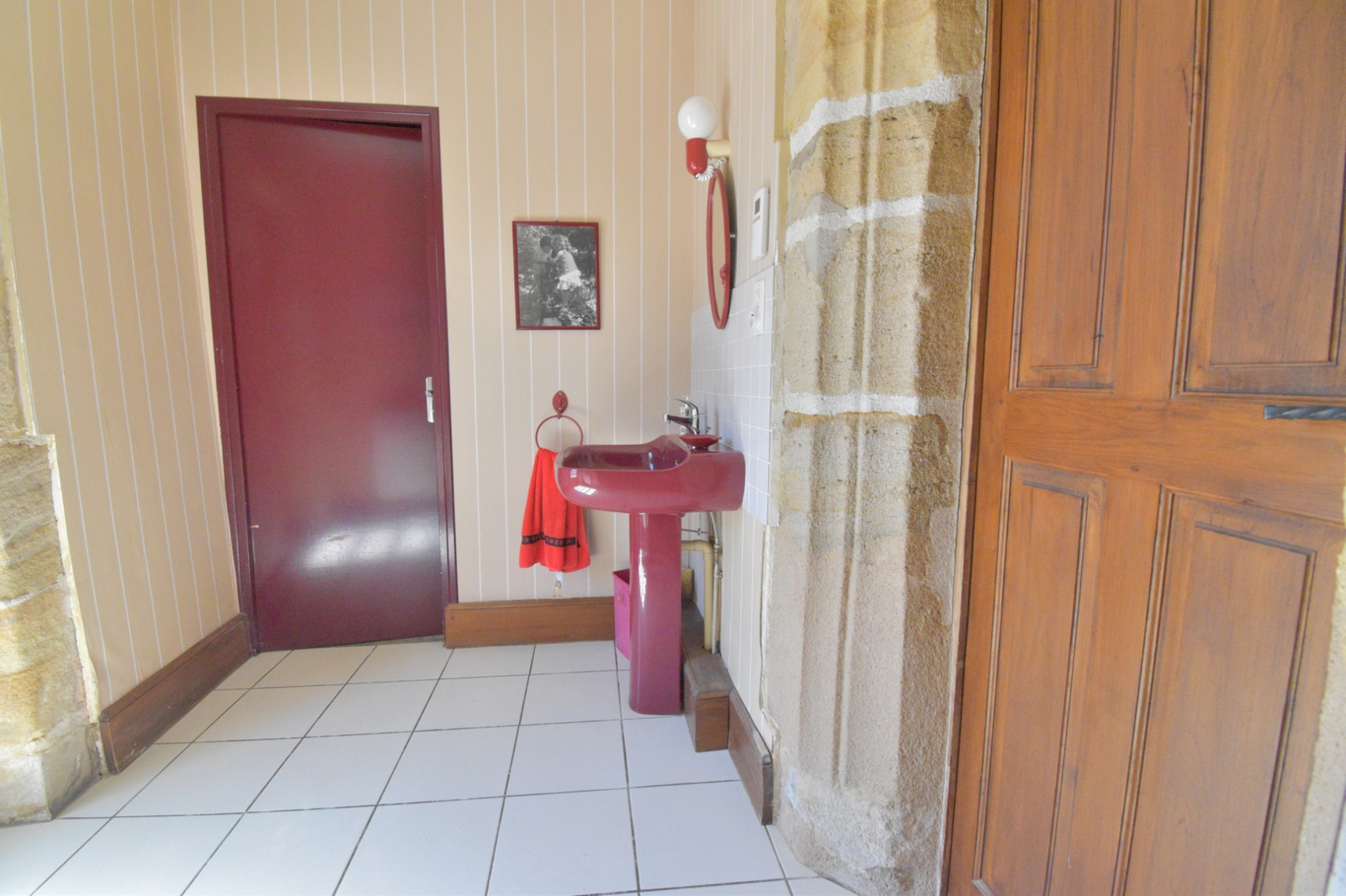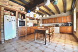 Rez-de-chaussée : une spacieuse entrée, une cuisine avec toujours son ancien four à pain en état de fonctionnement, une salle à manger avec cheminée d'époque, un grand salon avec cheminée, un wc avec lave-mains.