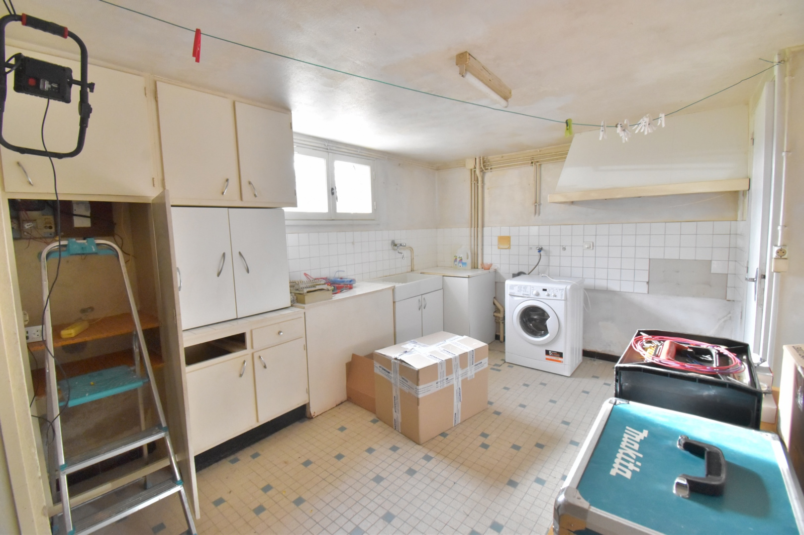 Sous-sol complet comprenant une cuisine d’été, une chambre, un WC, une chaufferie ainsi qu’un garage / atelier.